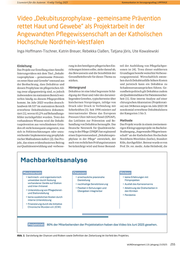 Inga Hoffmann-Tischner, Katrin Breuer, Rebekka Claßen, Tatjana Jöris, Ute Kowalewski: Video „Dekubitusprophylaxe – gemeinsame Prävention rettet Haut und Gewebe“ als Projektarbeit in